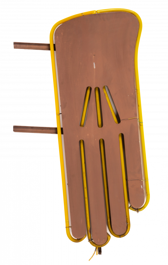 Patina konnte dieses Reklameschild in den Jahrzehnten, in denen es die Hausfassade des Erlanger Traditionsgeschäfts „Pfeiffer“ zierte, genug ansetzen. Die Handschuhmacher siedelten sich im 17. Jahrhundert im Zuge der Gründung der Erlanger Neustadt an und waren eines der bedeutendsten Gewerbe in der aufstrebenden neuen Markgrafenstadt. 143 Jahre und 4 Generationen Handschuhmacher-Tradition fanden mit der Schließung des Fachgeschäfts „Pfeiffer Leder und Mode“ 2019 ein Ende. Die Jahre und die Witterung haben ihre Spuren auf dem Schild hinterlassen, das wir 2020 in unsere Sammlungen aufnehmen konnten.