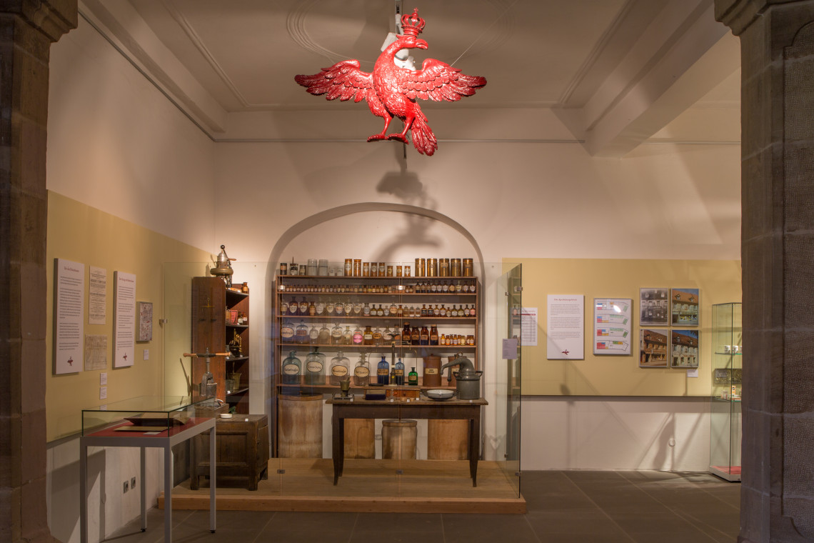 Nach einem Streifzug durch die Pharmazie- und Apothekengeschichte konzentriert sich die  Ausstellung auf die 250-jährige Historie der Adler-Apotheke. Die geschichtliche Darstellung endet mit einem Blick hinter die Kulissen der Apotheke im 21. Jahrhundert.