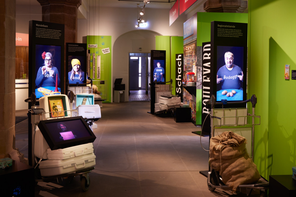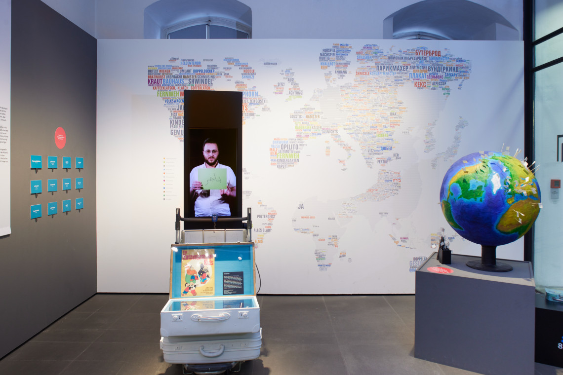 In der Ausstellung „Vielfraß meets Butterkeks“ kommen sprachliche „Weltenbummler“ selbst zu Wort und erzählen von ihrer Reise und ihren „Vorfahren“. Junge und ältere Besucherinnen und Besucher können interaktiv und spielerisch in die Welt der Sprache eintauchen, neue Lieblingswörter entdecken und am Ende ihrer Reise ein ganz persönliches Souvenir mit nach Hause nehmen: Mit dem Smart Mirror von Mirrads können Besucherinnen und Besucher Fotos von sich in historischen Kostümen und mit Requisiten ihrer Lieblingswörter machen. Diese besonderen Andenken an den Ausstellungsbesuch können dann über einen QR-Code heruntergeladen und nach Belieben geteilt werden.