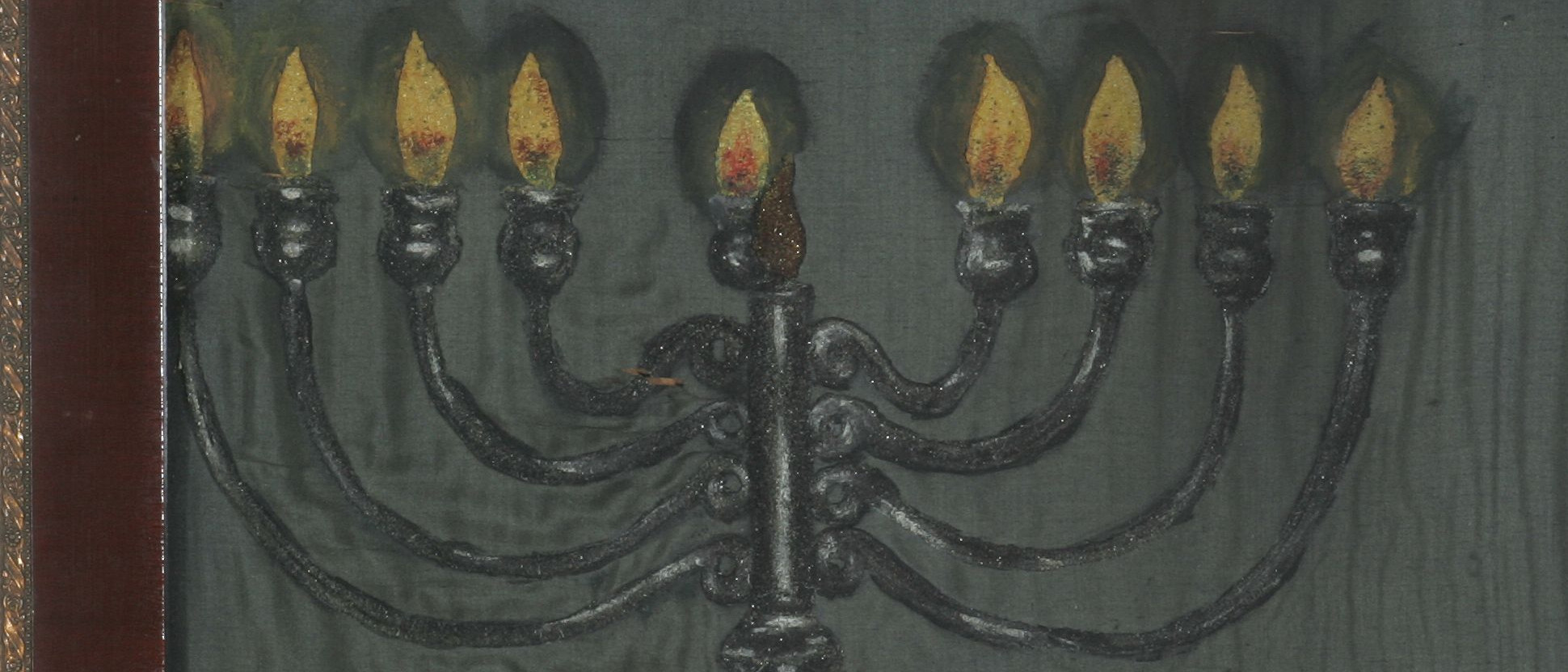 Die Erlanger Jüdin Hildegard Katz widmete dem Chanukka-Wunder dieses Seidengemälde, das sie 1925 der Jüdischen Gemeinde für eine Verlosung zum Purimfest stiftete. Es waren politisch bewegte Zeiten: Auch in Erlangen nahm der Antisemitismus zu; wenige Jahre später kamen die Nationalsozialisten an die Macht. Die Erlanger Jüdinnen und Juden wurden verfolgt, vertrieben, deportiert und ermordet – so auch Hildegard Katz, die 1943 im Vernichtungslager Auschwitz umkam.