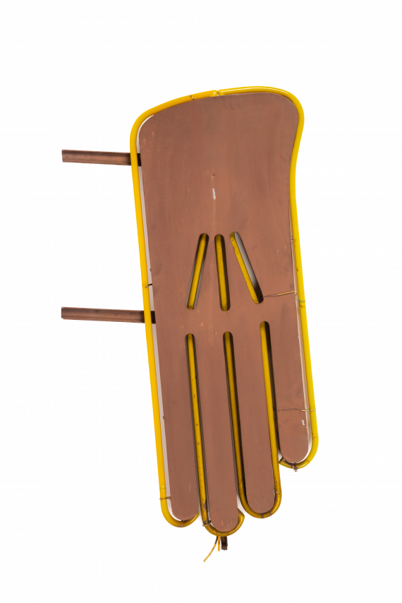 Patina konnte dieses Reklameschild in den Jahrzehnten, in denen es die Hausfassade des Erlanger Traditionsgeschäfts „Pfeiffer“ zierte, genug ansetzen. Die Handschuhmacher siedelten sich im 17. Jahrhundert im Zuge der Gründung der Erlanger Neustadt an und waren eines der bedeutendsten Gewerbe in der aufstrebenden neuen Markgrafenstadt. 143 Jahre und 4 Generationen Handschuhmacher-Tradition fanden mit der Schließung des Fachgeschäfts „Pfeiffer Leder und Mode“ 2019 ein Ende. Die Jahre und die Witterung haben ihre Spuren auf dem Schild hinterlassen, das wir 2020 in unsere Sammlungen aufnehmen konnten.