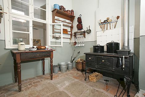 Die historische Museumsküche ist mit Hausrat und Küchengerät aus der Zeit um 1900 ausgestattet. Hier erleben die Kinder, wie ein Holz- und Kohleherd geschürt wurde und wie lange das Kochen vor hundert Jahren dauerte. Außerdem wird die Vorratshaltung der Urgroßeltern in einem gut bestückten „Vorratskeller“ besprochen. Wie haben sie Lebensmittel haltbar gemacht und ohne Strom gekühlt? Am Schluss essen die Teilnehmer das selbst gekochte Gericht – Getreidebrei und Apfelmus – an einer Tafel. All dies ermöglicht auch den Vergleich mit heutigem Essen.