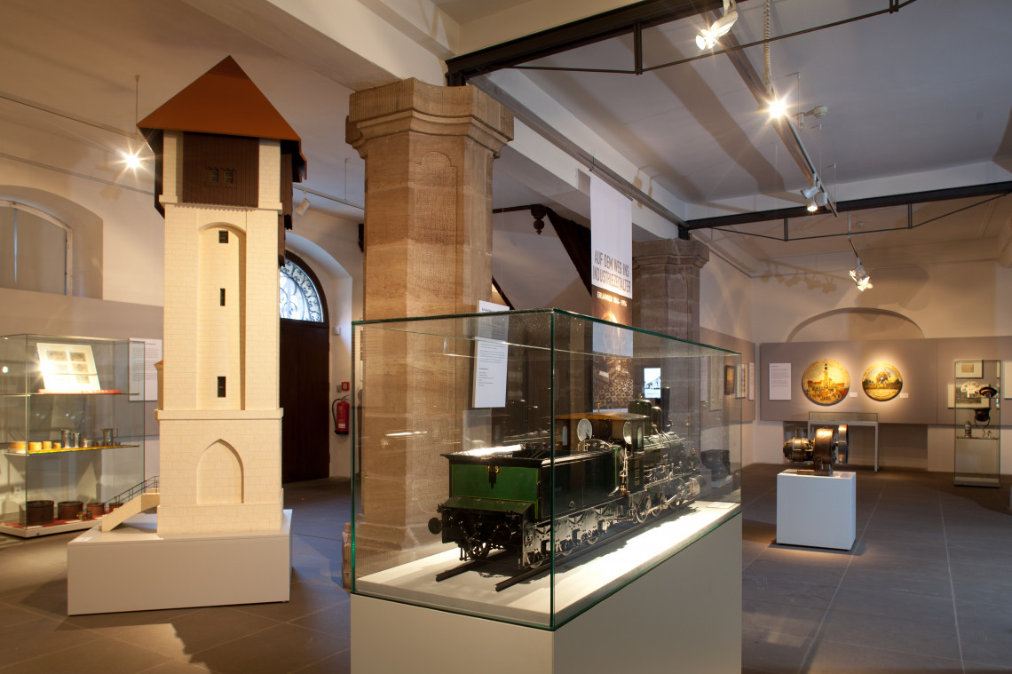 Weitere Schwerpunkte sind der Kanal- und Eisenbahnbau, der Aufschwung der Brauereien, die Geschichte der ersten großen Fabriken und die Entstehung der Stadtwerke. Ein eigener Ausstellungsbereich ist der Arbeiterschaft und den Anfängen der Arbeiterbewegung gewidmet. Am Ende steht ein Blick auf die heutige Erlanger Industrie. Zu den herausragenden Exponaten zählen das Modell einer Dampflok der K. Bay. Staatsbahnen, der Tresor der Erichbrauerei und ein vollständiger Röntgenapparat von RGS.
