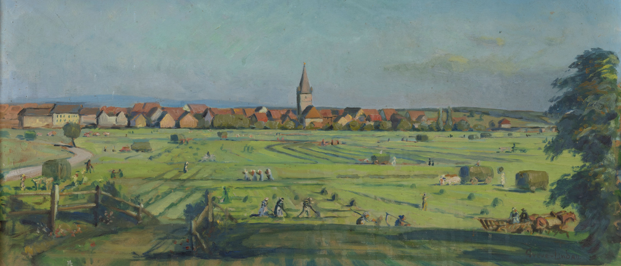 Anders als Greve-Lindau hat Adolf Schinnerer (1876–1949) im Erlanger Raum einen Namen und wurde in Ausstellungen gewürdigt. Damals selbst in Tennenlohe ansässig, war er es, der den Künstlerkollegen zum Umzug nach Franken bewogen hatte. Beide kannten sich seit der gemeinsamen Ausbildungs- und Studienzeit in München und Karlsruhe, zudem waren sie über ihre Heirat zweier Schwestern