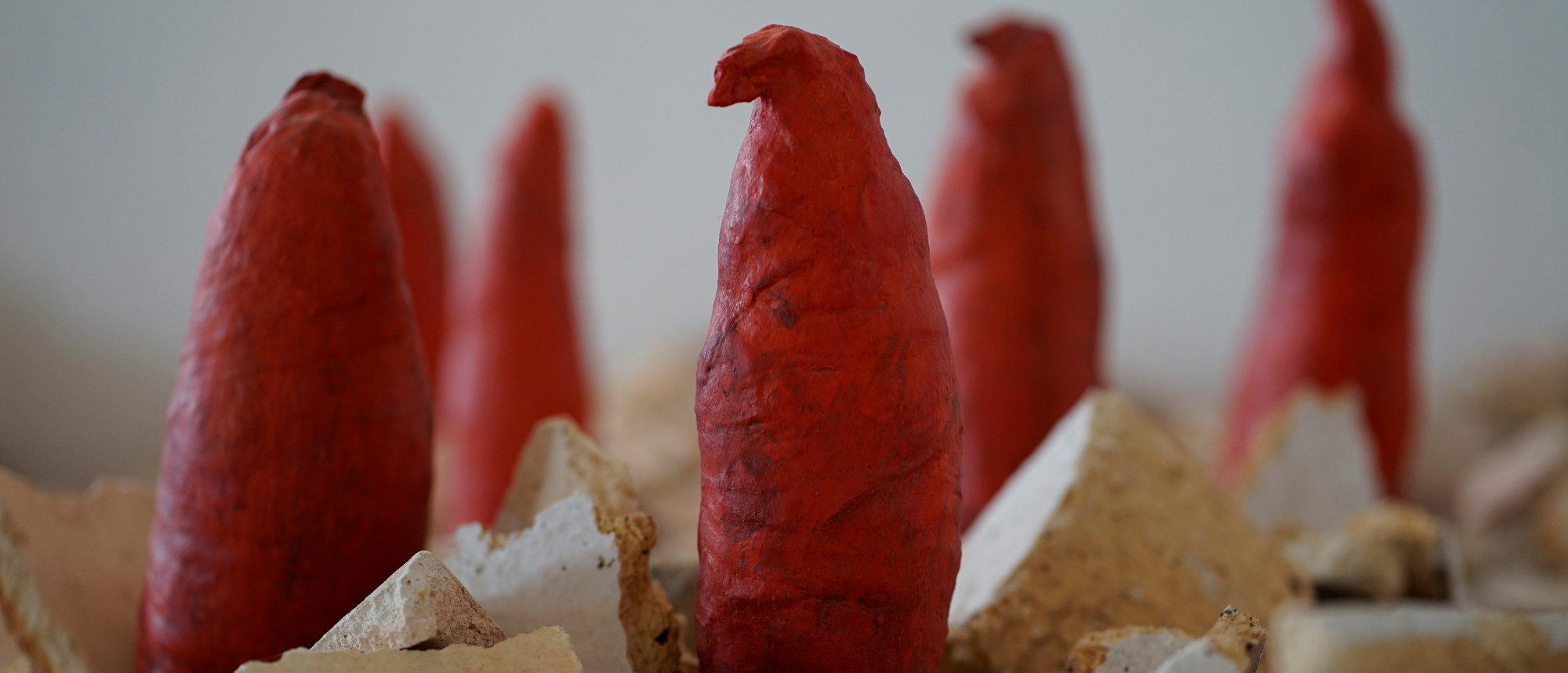Im Stadtmuseum Erlangen verbindet die in München lebende Künstlerin eigene Zeichnungen und Plastiken, die in Beschäftigung mit dem Stadtmuseum entstanden sind, mit den historischen Räumen des Erlanger Stadtmuseums und ausgewählten Sammlungsstücken. Damit eröffnet sie neue Perspektiven auf scheinbar Altbekanntes. Das Museum wird zum Spielraum für eine dreidimensionale Spurensuche.