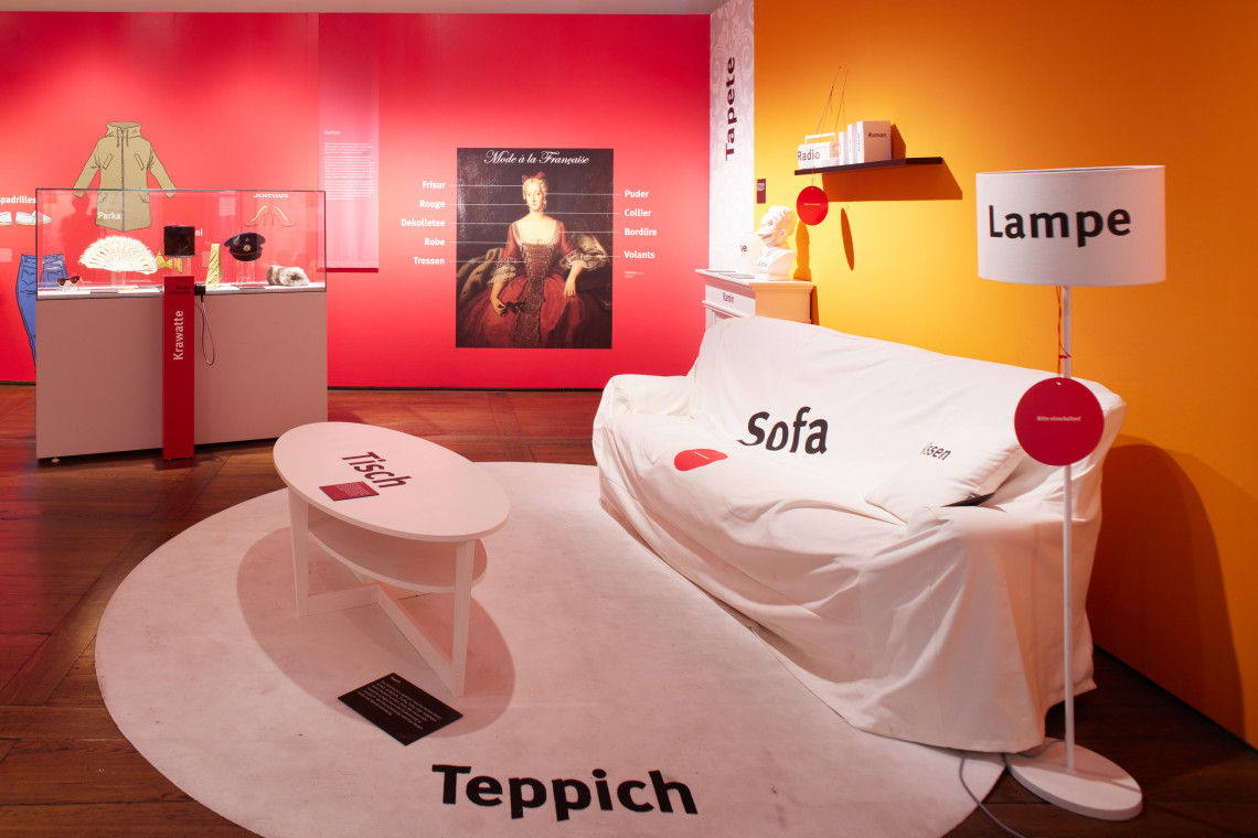 In der Ausstellung „Vielfraß meets Butterkeks“ kommen sprachliche „Weltenbummler“ selbst zu Wort und erzählen von ihrer Reise und ihren „Vorfahren“. Junge und ältere Besucherinnen und Besucher können interaktiv und spielerisch in die Welt der Sprache eintauchen, neue Lieblingswörter entdecken und am Ende ihrer Reise ein ganz persönliches Souvenir mit nach Hause nehmen: Mit dem Smart Mirror von Mirrads können Besucherinnen und Besucher Fotos von sich in historischen Kostümen und mit Requisiten ihrer Lieblingswörter machen. Diese besonderen Andenken an den Ausstellungsbesuch können dann über einen QR-Code heruntergeladen und nach Belieben geteilt werden.