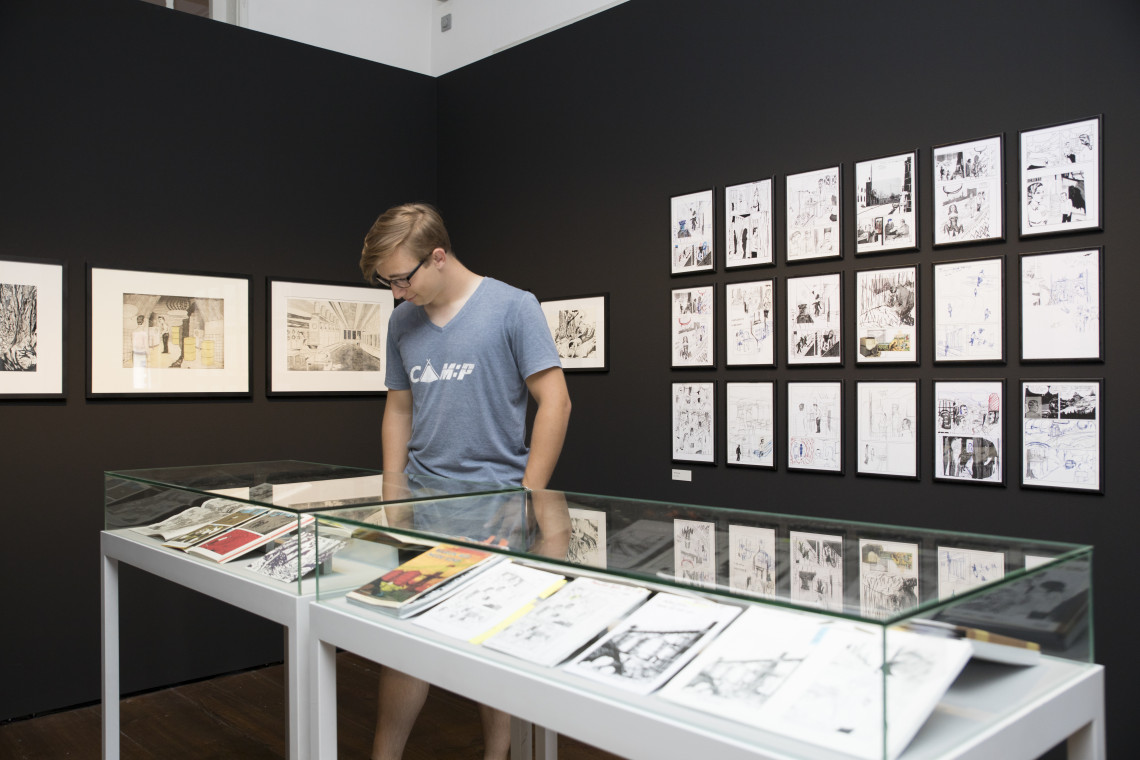 In diese Ausstellung darf man sich trotzdem wagen. Zahlreiche Originalzeichnungen aus dem Comic werden zu sehen sein. Die fertigen Seiten sind faszinierend, doch wie war der Weg dorthin? Anhand seiner Skizzenbücher und weiterer Objekte legt Jordan die Entstehung seines Comics offen. Storyboard- und Lettering-Seiten, Bild- und Textquellen lassen den umfangreichen Recherche- und Findungsprozess erahnen. Auch Vorversionen, mit denen Jordan die Geschichte immer wieder ausprobiert hat, sowie Auszüge aus Vorabveröffentlichungen mit der Künstler*innengruppe Tonto aus Graz werden ausgestellt. Ein spannender Einblick in innovative Comic-Kunst!