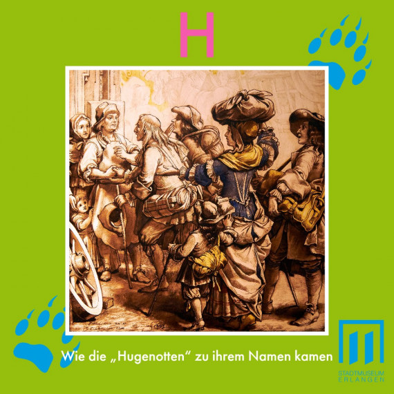 Als „huguenots“ bezeichnete man seit dem 16. Jahrhundert die französischen Anhänger des Calvinismus. Da sie in ihrer Heimat wegen ihres Glaubens verfolgt wurden, flohen ab 1685 Hunderttausende HUGENOTTEN in protestantische Gebiete, so auch in das Fürstentum Bayreuth. Dort ließ Markgraf Christian Ernst für die Geflüchteten eine eigene Siedlung errichten: die Erlanger Neustadt.