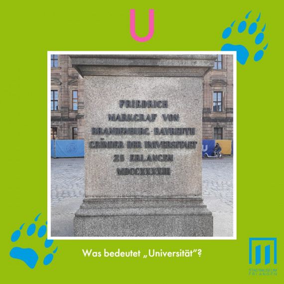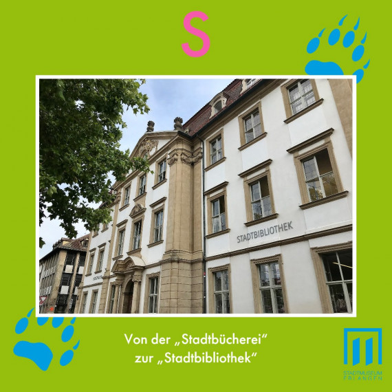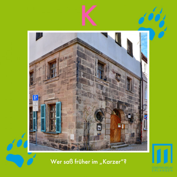 Kurz vor der letzten Station unserer Wörter-Tour durch die Erlanger Stadtgeschichte legen wir einen Zwischenstopp in unserem „Zuhause“ ein, dem STADTMUSEUM Erlangen. Die Ursprünge des Museums reichen bis ins 19. Jahrhundert zurück, 1919 wurden die ersten Ausstellungsräume im Wasserturm, dem ehemaligen Karzer, eröffnet. 1964 erfolgte der Umzug in das ehemalige Altstädter Rathaus am Martin-Luther-Platz.