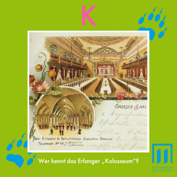 Auch in Erlangen gibt es ein KOLOSSEUM. So hieß das 1895 erbaute Gebäude an der Henkestraße 28, in dem sich der seinerzeit größte Veranstaltungssaal der Stadt befand. In seiner fast 130-jährigen Geschichte diente der Bau als Restaurant, Lazarett, Kino und Hotel. Vereinssitzungen und Varietéabende fanden hier ebenso statt wie die Parteiveranstaltungen der NSDAP.