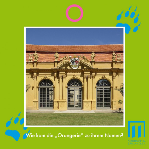 Das Wort „ORANGERIE“ bezeichnete im 16. Jahrhundert repräsentative Sammlungen exotischer (Zitrus-)Pflanzen, später auch die Gebäude, in denen die wärmeverwöhnten Gewächse „überwintert“ wurden. Seit der Barockzeit zählten Orangerien zur üblichen Ausstattung fürstlicher Gartenanlagen. Die 1706 fertiggestellte Erlanger Orangerie diente bis 1755 als „Pomeranzenhaus“ („Pomeranze“ war eine seit dem 15. Jahrhundert verwendete Bezeichnung für die Orange). Seit 1818 nutzt die Universität das Gebäude.