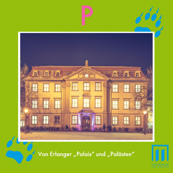 Sprachlich eng verwandt ist das deutsche Wort „PALAST“, das schon im 13. Jahrhundert aus dem Französischen ins Deutsche kam. Auch dieses Wort hat in Erlangen seine Spuren hinterlassen: Man findet es in den Bezeichnungen „Himbeerpalast“ und „Glaspalast“, die für eine zweite Blüte der Erlanger „Palastbaukunst“ nach dem Zweiten Weltkrieg stehen.