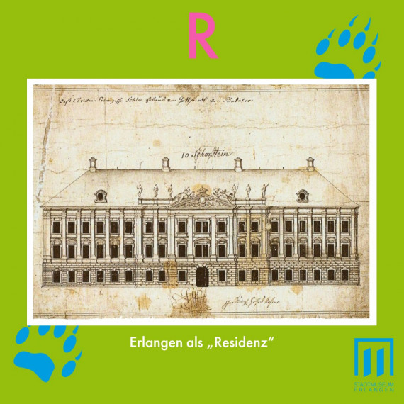 Im Jahr 1708 erhob Markgraf Christian Ernst die Erlanger Alt- und Neustadt zur sechsten Landeshauptstadt des Markgraftums Brandenburg-Bayreuth. Der Status einer RESIDENZ verhalf Erlangen zu neuer Blüte. Bereits um 1700 hatte der Bau des Schlosses begonnen, bald darauf wurde ein barocker Schlossgarten mit Orangerie und Brunnen angelegt.