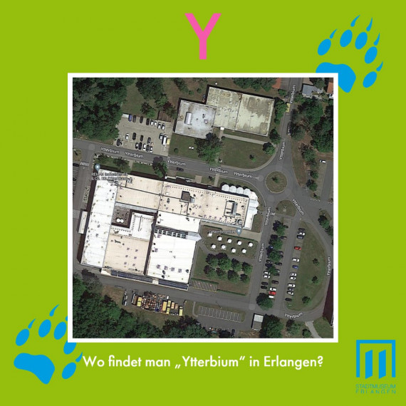 Und wie ist es in Erlangen um das Ypsilon bestellt? Das Stadtlexikon verzeichnet einen einzigen Eintrag für diesen Buchstaben, den Straßennamen YTTERBIUM, und der führt uns, na klar, ins Ausland: